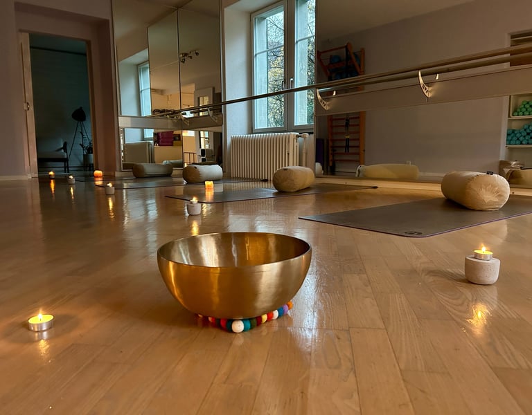 Experience a thoughtfully curated journey from movement to deep stillness. We combine gentle relaxing flow, soft candlelight, essential oils, and the healing vibrations of singing bowls to create a space of total relaxation.